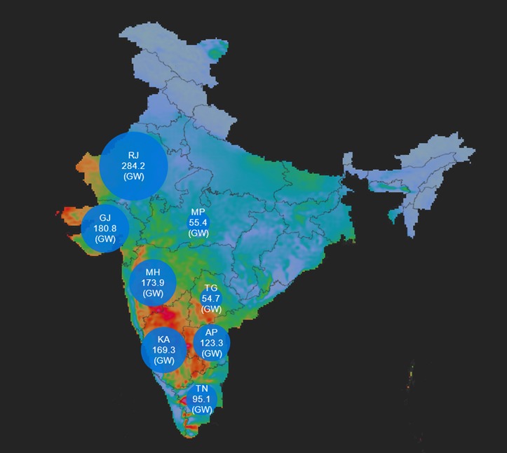 Fig 1: This figure illustrates estimated wind power across the top 10 states in the country with the highest wind potential