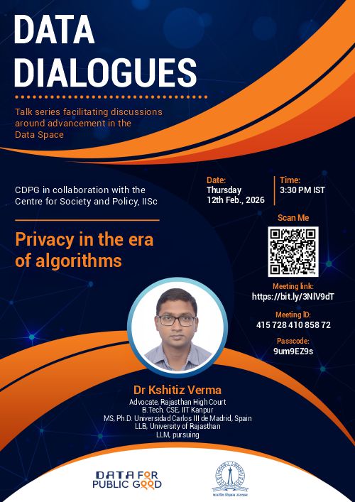 Welcome to the CDPG Data Dialogues talk series. It is a series of online talks presenting latest advances in research in the data space. The topics will include, but are not limited, the following: data privacy and security, data policies and economics, consent management, privacy preserving, data processing, secure analytics etc. The online talks will be given by known subject matter experts belonging to both academia and industry.